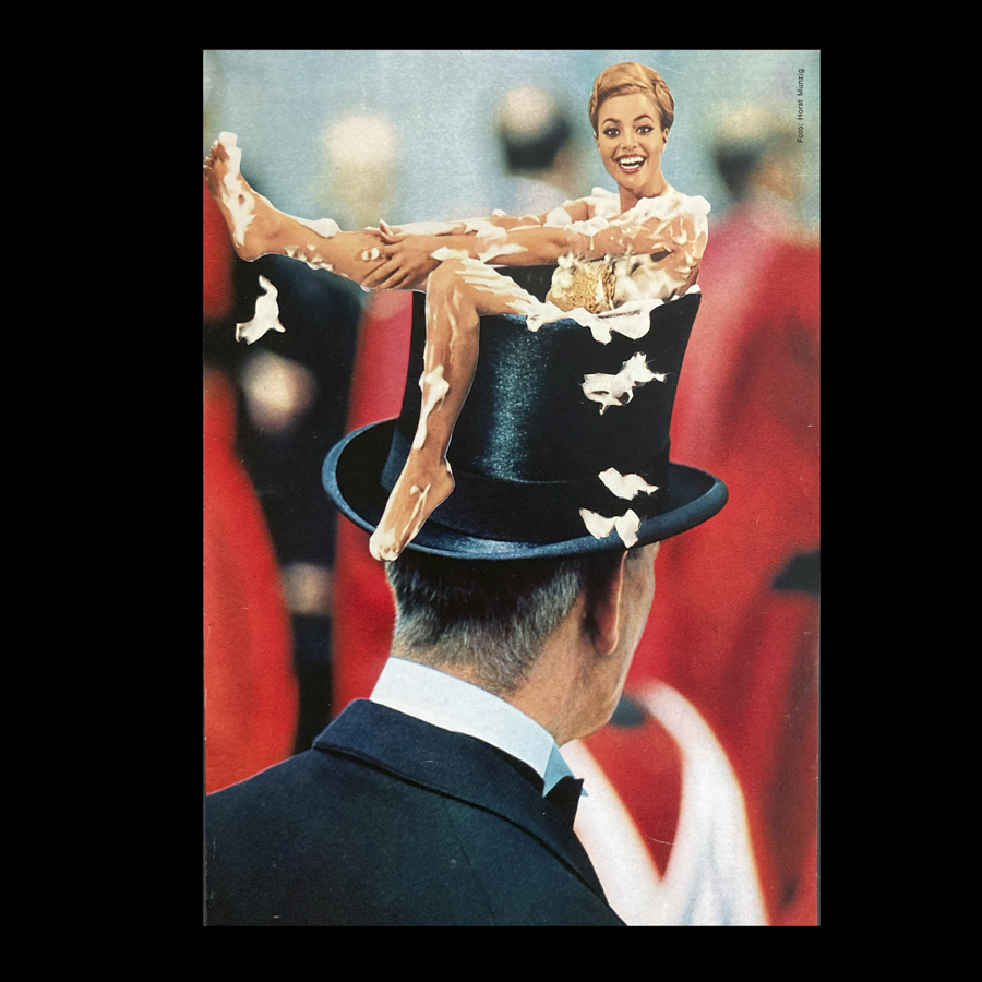 Originally, my interest in historical advertising led me to buy old magazines. I found it fascinating to rediscover the zeitgeist of past decades and was soon inspired to make artistic use of the wealth of this material. What fascinates me about the collage technique is how things that were created completely independently of each other complement each other – sometimes almost magically – resulting in something that is much more than the sum of the original parts.